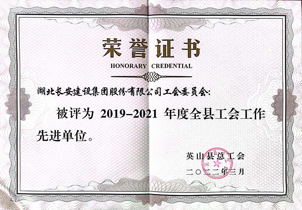 集團(tuán)工會(huì)被評(píng)為2019-2021年度英山縣工會(huì)工作先進(jìn)單位