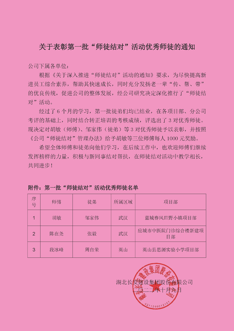 長(zhǎng)安建設(shè)集團(tuán)“師徒結(jié)對(duì)”活動(dòng)儀式舉行