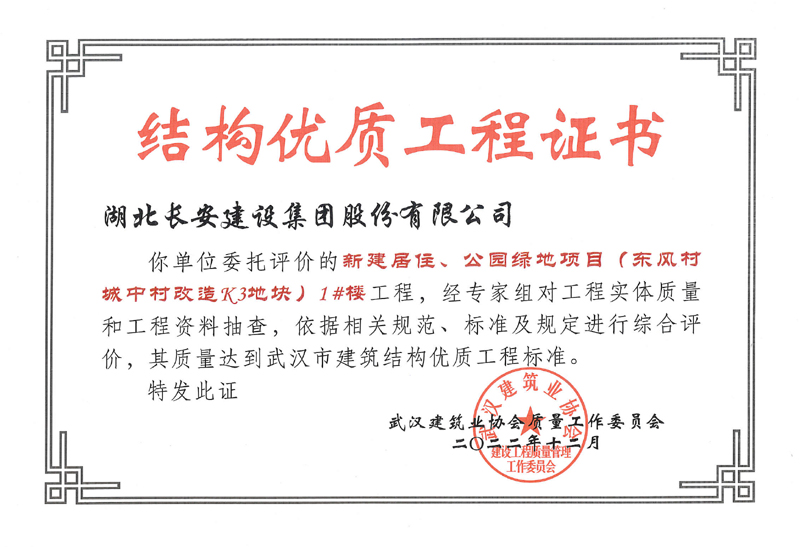 • 東風村城中村改造k3地塊1#、2#、4#樓獲評“武漢市建筑結(jié)構(gòu)優(yōu)質(zhì)工程”