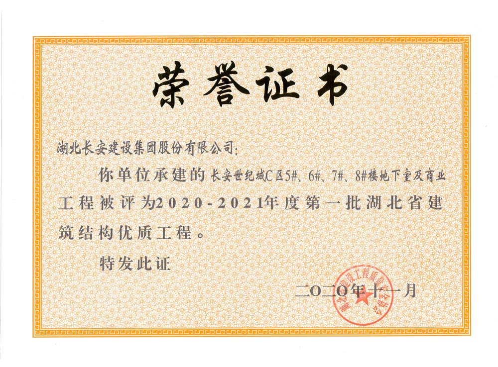 長安世紀(jì)城C區(qū)5#、6#、7#、8#樓地下室及商業(yè)2020-2021年度第一批湖北省建筑結(jié)構(gòu)優(yōu)質(zhì)工程