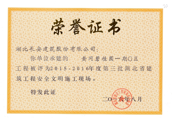 2015年省建筑結(jié)構(gòu)優(yōu)質(zhì)工程榮譽(yù)證書