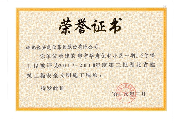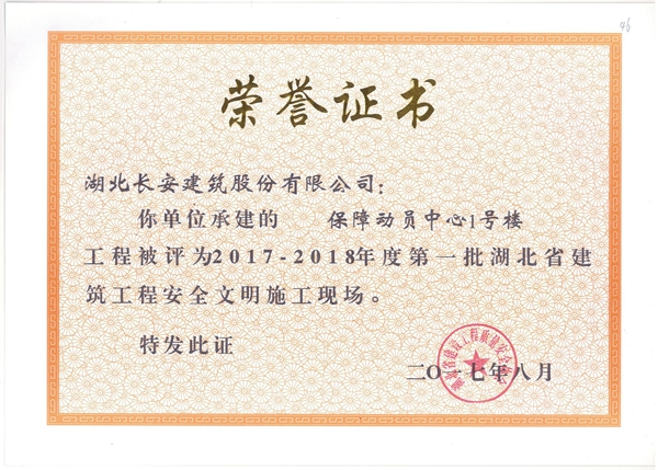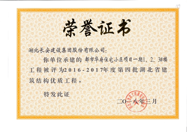 2018年省建筑結(jié)構(gòu)優(yōu)質(zhì)工程榮譽(yù)證書