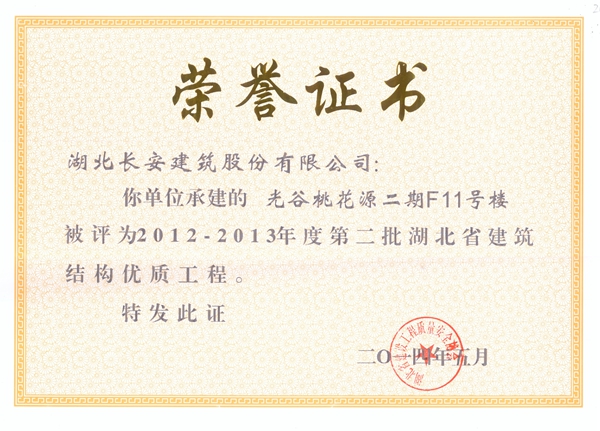 2014年省建筑結(jié)構(gòu)優(yōu)質(zhì)工程榮譽(yù)證書