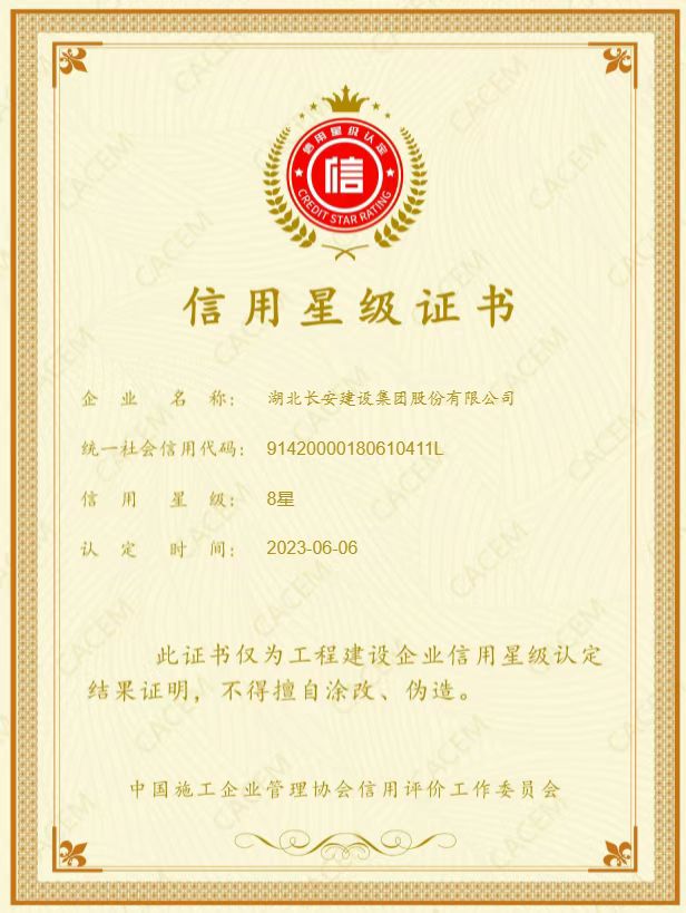 集團(tuán)公司被評(píng)為“8星信用”工程建設(shè)企業(yè)