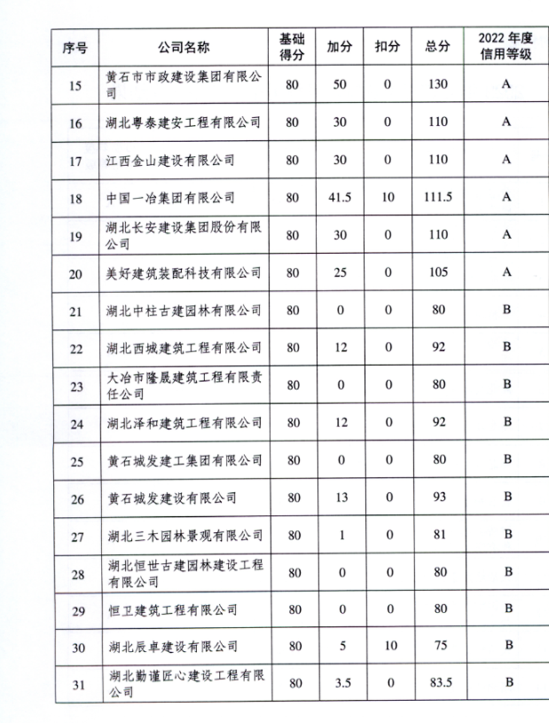 集團(tuán)公司被黃石市住建局評(píng)為建筑市場(chǎng)主體信用A級(jí)單位