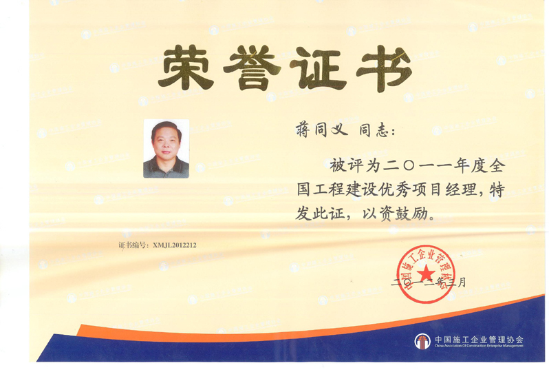 2011年度全國工程建設優(yōu)秀項目經(jīng)理(蔣同義)