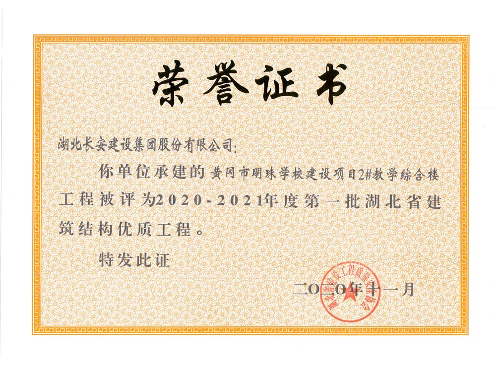 黃岡市明珠學(xué)校建設(shè)項目2#教學(xué)綜合樓2020-2021年度第一批湖北省建筑結(jié)構(gòu)優(yōu)質(zhì)工程