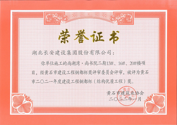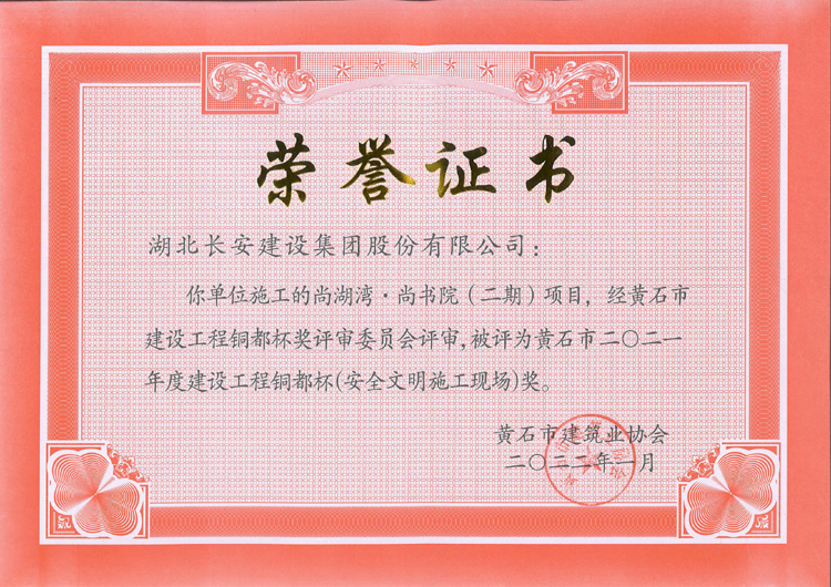 黃石尚湖灣?尚書院二期項目榮獲安全文明施工現(xiàn)場和結(jié)構(gòu)優(yōu)質(zhì)工程