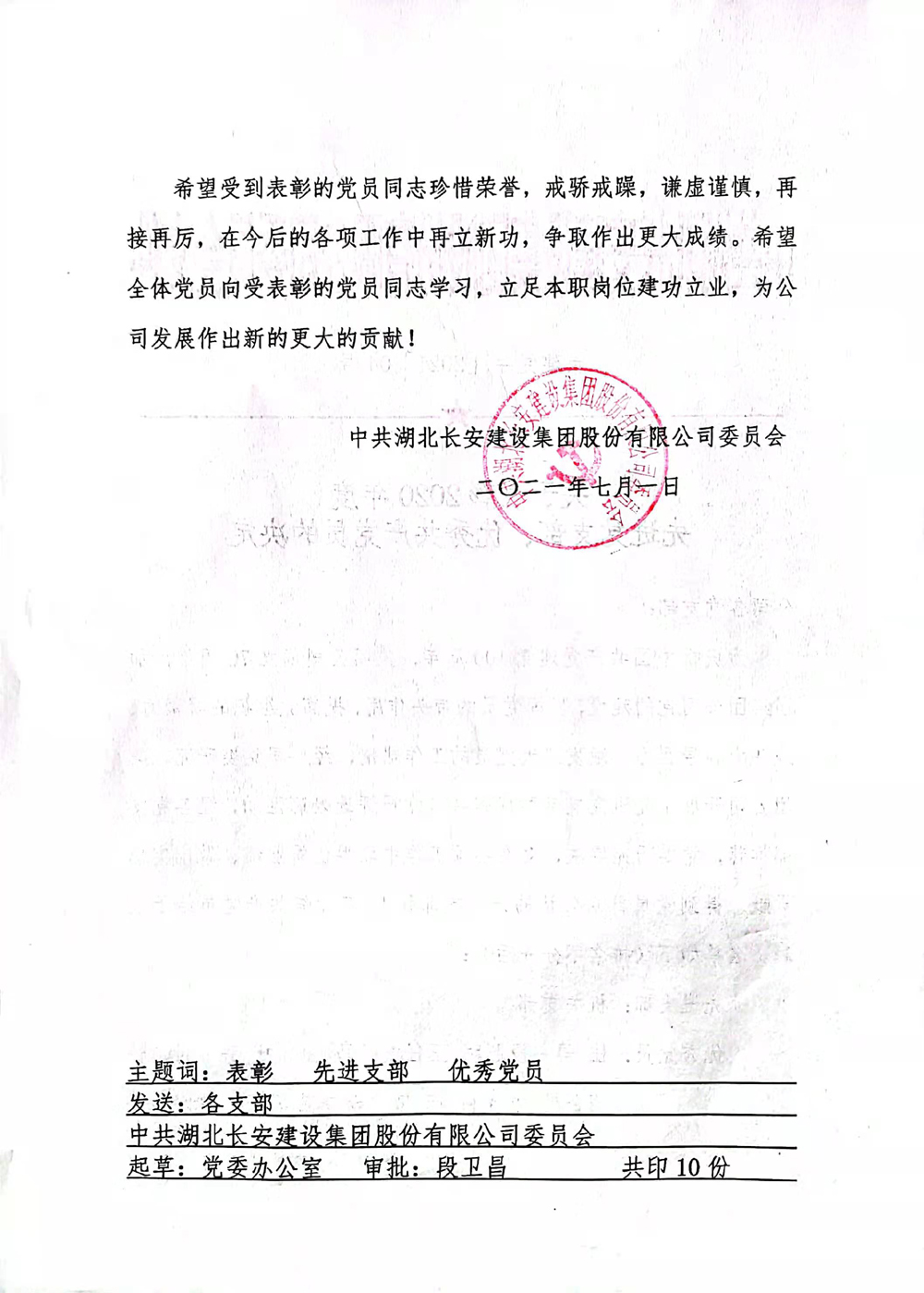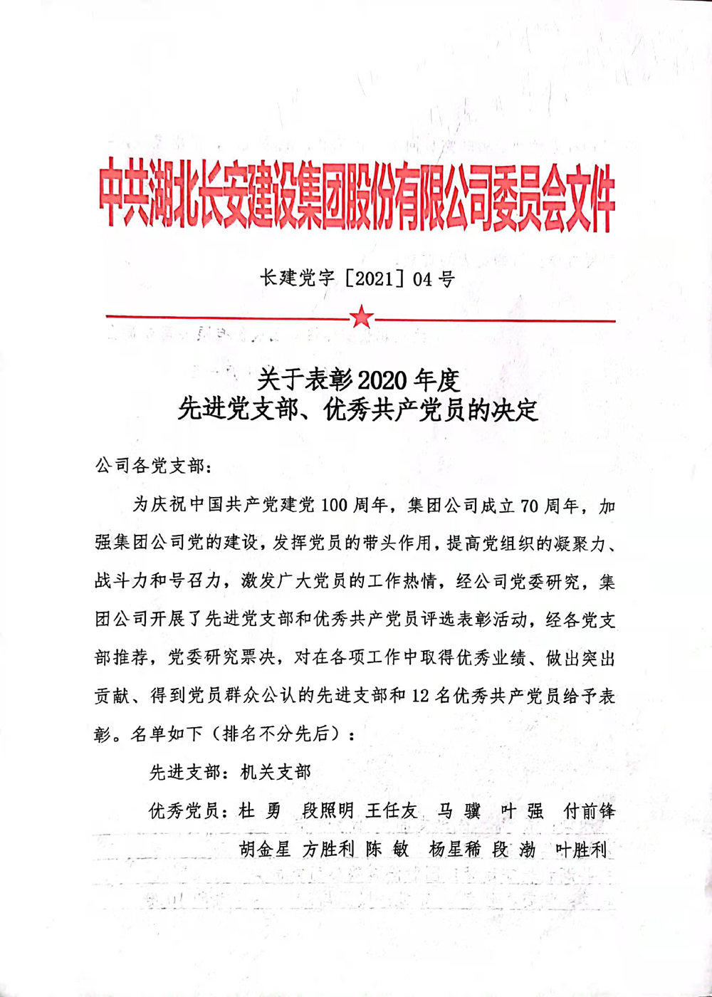關(guān)于表彰2020年度先進(jìn)黨支部、優(yōu)秀共產(chǎn)黨員的決定