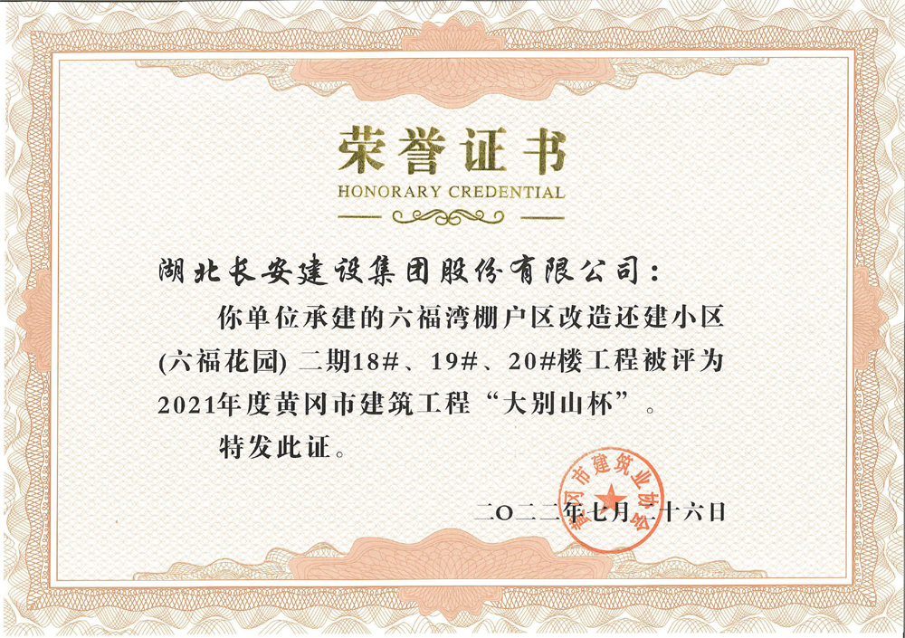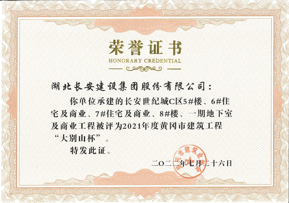 公司承建的4個(gè)工程被評(píng)為2021年度黃岡市建筑工程“大別山杯”