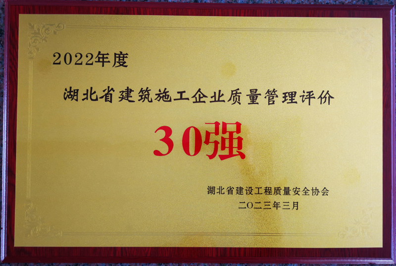 集團公司榮膺2022年度湖北省建筑施工企業(yè)質量管理評價第9名