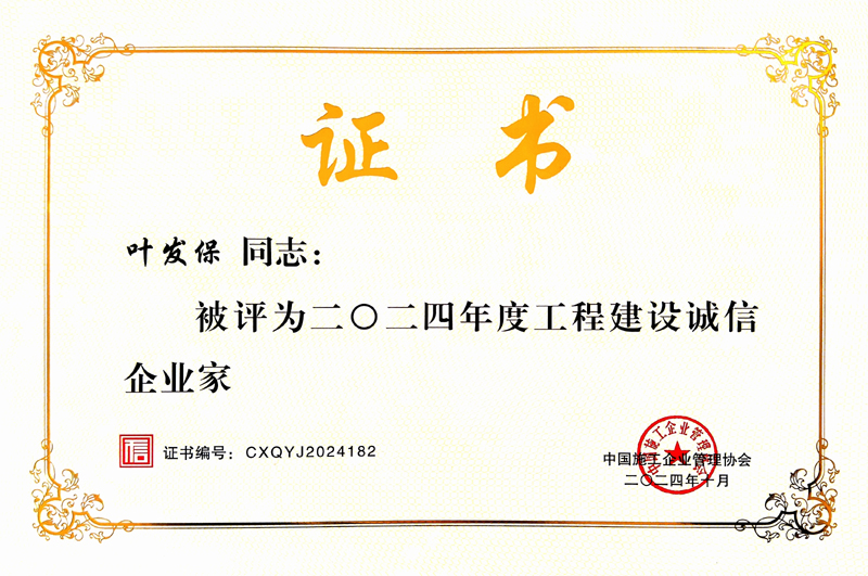 集團(tuán)總經(jīng)理葉發(fā)保獲評二○二四年度工程建設(shè)誠信企業(yè)家榮譽(yù)稱號(hào)