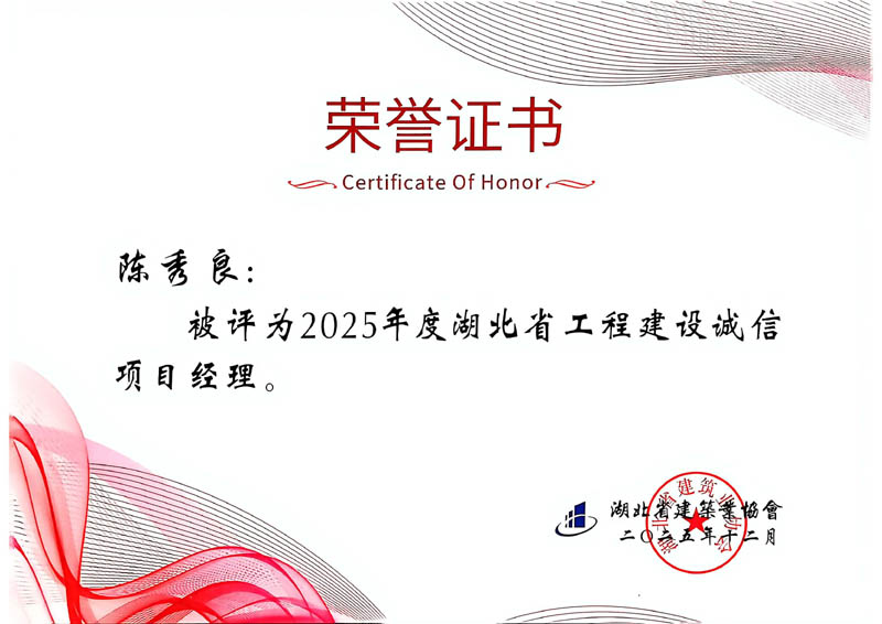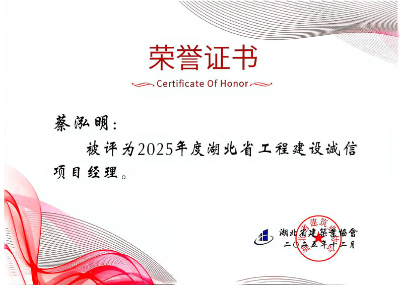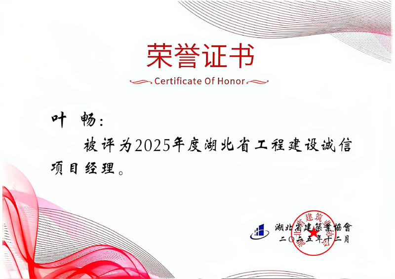 葉暢、蔡泓明、陳秀良、孔又平等4人被評為2025年度湖北省工程建設誠信項目經(jīng)理