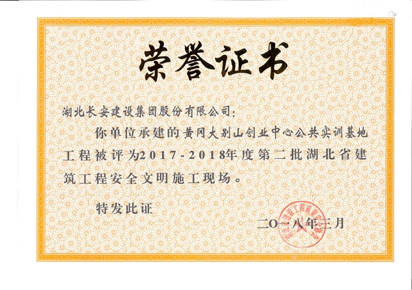 黃岡大別山創(chuàng)業(yè)中心公共實(shí)訓(xùn)基地2017-2018年度第二批湖北省建筑工程安全文明施工現(xiàn)場(chǎng)