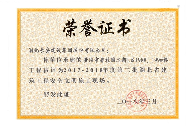黃岡市碧桂園二期198#、199#樓2017-2018年度第二批湖北省建筑工程安全文明施工現(xiàn)場(chǎng)