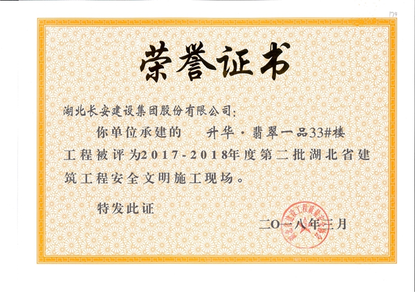 升華翡翠一品33#樓2017-2018年度第二批湖北省建筑工程安全文明施工現(xiàn)場(chǎng)