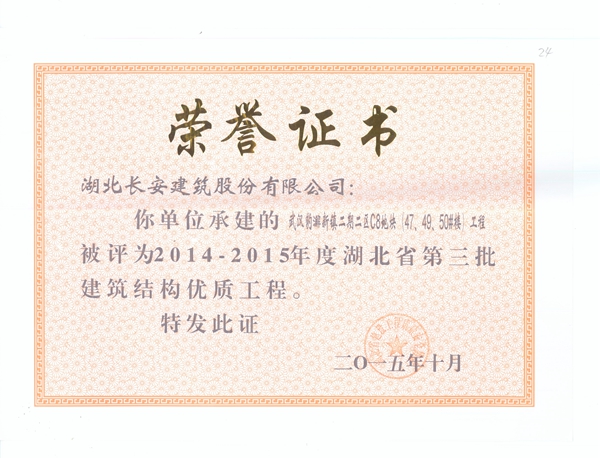 豹澥二期二區(qū)C8地塊47、49、50號(hào)樓建筑結(jié)構(gòu)優(yōu)質(zhì)證書