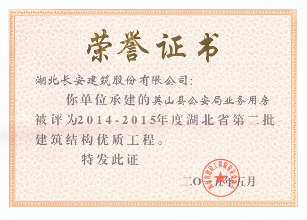 英山縣公安局業(yè)務(wù)用房2014-2015年度省結(jié)構(gòu)優(yōu)質(zhì)