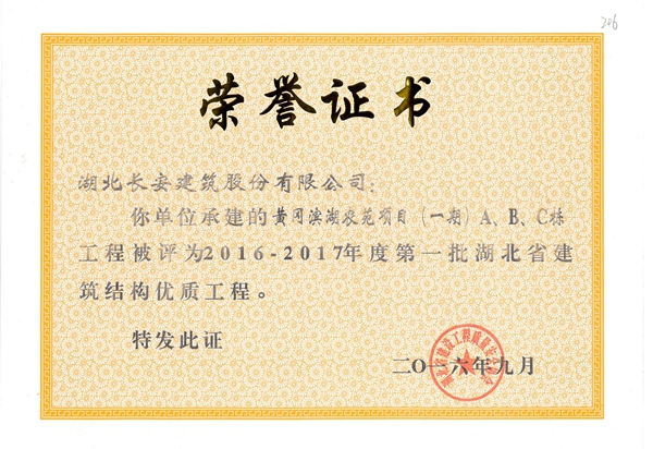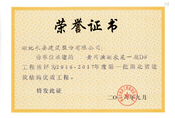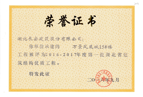 黃岡萬景城1#樓被評(píng)為2014-2015省結(jié)構(gòu)優(yōu)質(zhì)