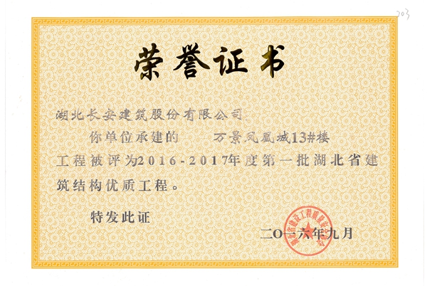 萬景鳳凰城13#樓省建筑結(jié)構(gòu)優(yōu)質(zhì)2016