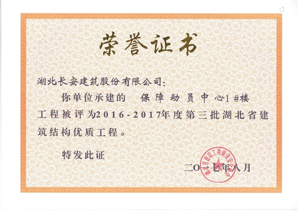 保障動(dòng)員中心1#樓被評(píng)為2016-2017年度第三批省結(jié)構(gòu)優(yōu)質(zhì)
