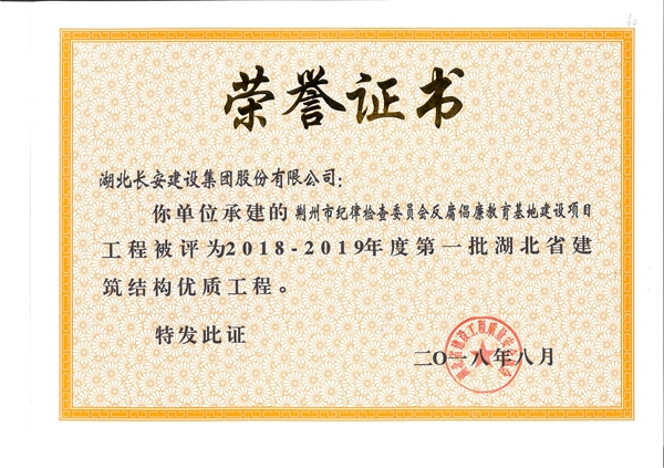 荊州市紀(jì)律檢查委員會反腐倡廉教育基地建設(shè)項目工程被評為2018-2019年度第一批湖北省建筑結(jié)構(gòu)優(yōu)質(zhì)工程