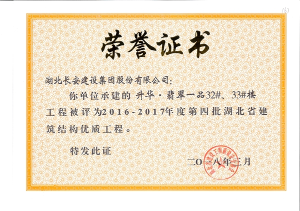升華翡翠一品32#、33#樓2016-2017年度第四批湖北省建筑結(jié)構(gòu)優(yōu)質(zhì)工程