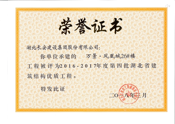 萬景鳳凰城26#樓2016-2017年度第四批湖北省建筑結(jié)構(gòu)優(yōu)質(zhì)工程