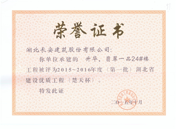 升華翡翠一品24號(hào)樓省建設(shè)優(yōu)質(zhì)楚天杯2015