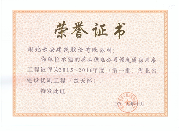 英山供電公司調(diào)度通信用房省建設(shè)優(yōu)質(zhì)楚天杯