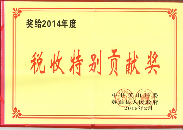 2014年度稅收特別貢獻(xiàn)獎(jiǎng)(英山)