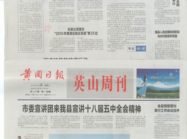 報(bào)紙(長(zhǎng)安公司晉升“2015年度湖北民企百強(qiáng)”第25位