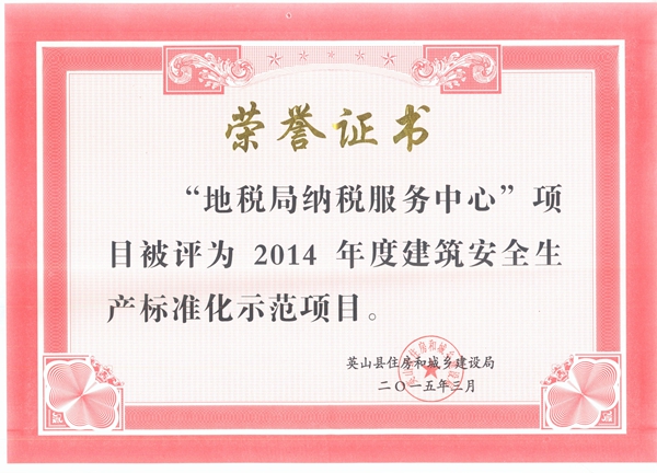 地稅局納稅服務(wù)中心被評(píng)為2014年度建筑安全生產(chǎn)標(biāo)準(zhǔn)化示范項(xiàng)目
