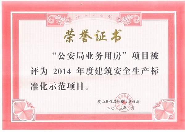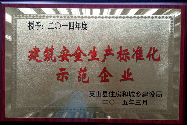 建筑安全生產(chǎn)標(biāo)準(zhǔn)化示范企業(yè)(2014)英山