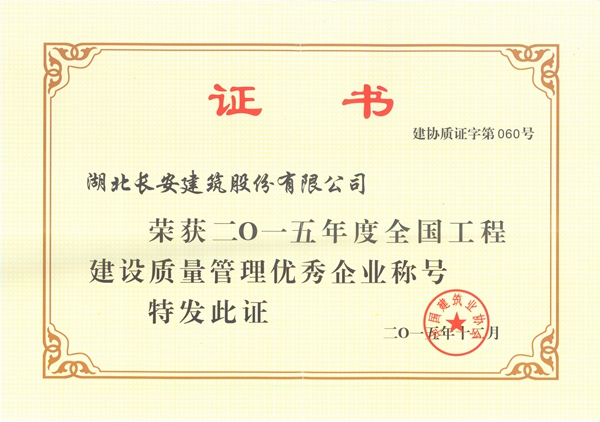 公司榮獲2015年度全國工程建設(shè)質(zhì)量管理優(yōu)秀企業(yè)稱號(hào)2015