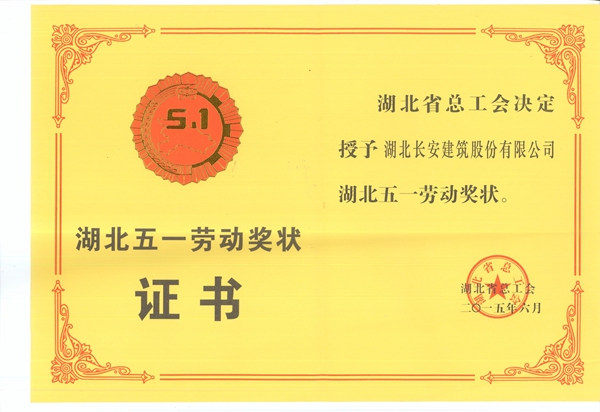 湖北五一勞動(dòng)獎(jiǎng)狀2015年6月