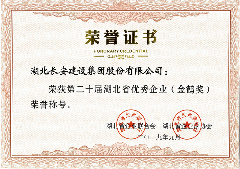 2019年第20屆省優(yōu)秀企業(yè)(金鶴獎)