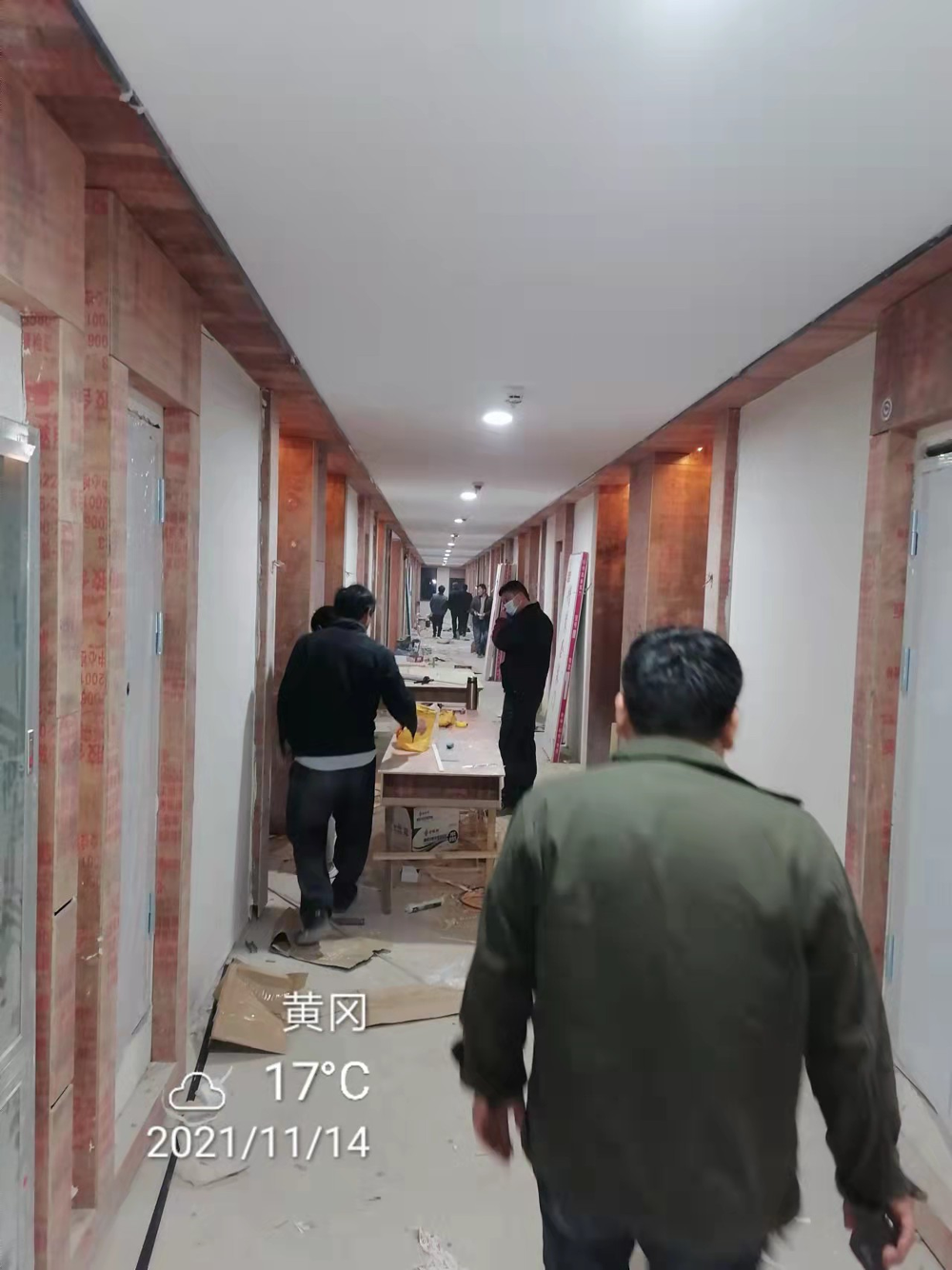 11月8日,麻城市住建局局長夏峰、副局長胡劍平、質(zhì)監(jiān)站站長梁浩以及副站長周俞燾在麻城新建黨?,F(xiàn)場辦公,部署安排疫情防控工作,落實隔離點搶建方案,跟進施工總進度倒排計劃,要求責任到人,每日晚上要上報當日施工進展情況,要及時對完成計劃滯后的分項工程進行查漏補缺、及時糾正。
