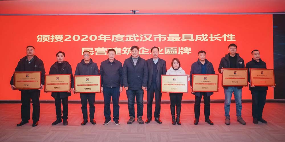 會(huì)上,頒發(fā)了“2020年度武漢市最具成長性民營建筑企業(yè)”獎(jiǎng)牌。集團(tuán)自2018年榮獲“2017年度武漢市最具成長性民營建筑企業(yè)”以來,連續(xù)4年蟬聯(lián)該項(xiàng)榮譽(yù)。