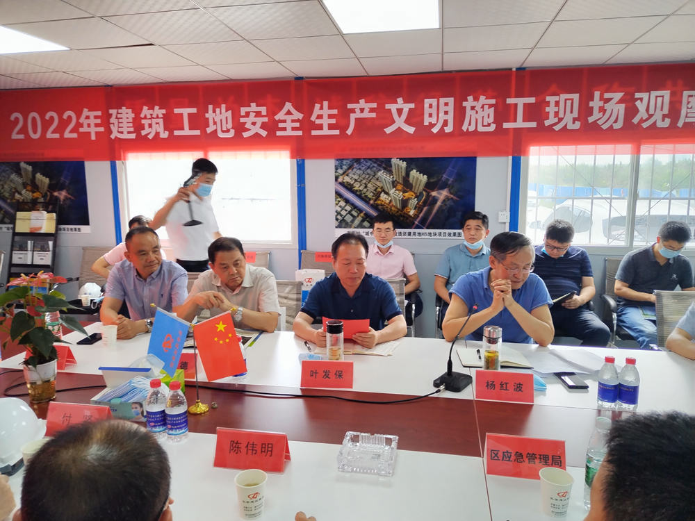 6月10日--11日,2022年建設(shè)工地安全生產(chǎn)文明施工現(xiàn)場(chǎng)觀摩暨安全生產(chǎn)月活動(dòng)啟動(dòng)儀式在集團(tuán)公司承建的東風(fēng)村“城中村”綜合改造還建用地H5地塊(項(xiàng)目)圓滿舉行。硚口區(qū)政府(政府辦)、建設(shè)局(建管站)、城管局、應(yīng)急管理局、環(huán)保局以及包括硚口區(qū)所有街道在內(nèi)的相關(guān)部門(單位)領(lǐng)導(dǎo)出席啟動(dòng)儀式。硚口轄區(qū)建筑、市政、拆除工地建設(shè)、監(jiān)理、施工單位相關(guān)負(fù)責(zé)人以及集團(tuán)公司各區(qū)域(分公司)經(jīng)理和主要技術(shù)、工程管理人員參加了觀摩。