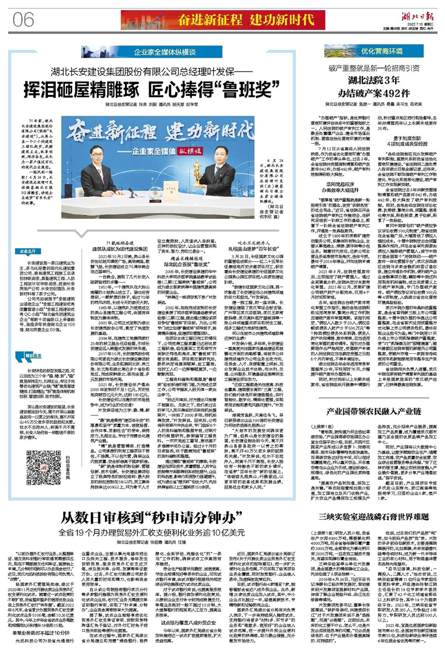 一路風(fēng)雨一路歌!6月24日,長安建設(shè)總經(jīng)理葉發(fā)保做客湖北日報(bào)5G演播室,講述企業(yè)逐夢“百年長安”的故事。