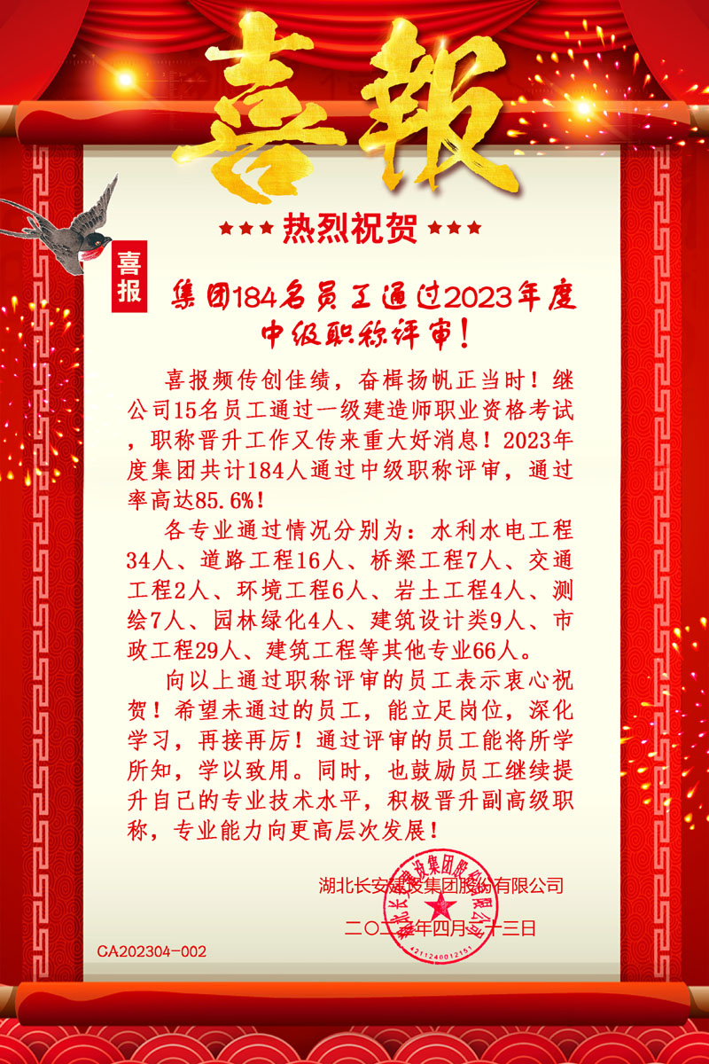 集團(tuán)184名員工通過2023年度中級(jí)職稱評(píng)審
