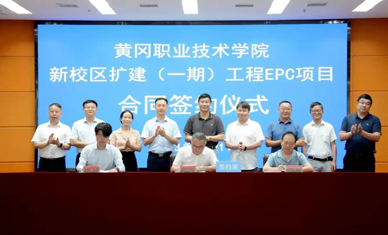 7月21日上午,黃岡職業(yè)技術學院新校區(qū)擴建建設項目(一期)EPC總承包合同簽約儀式在該校培訓中心報告廳舉行。該校黨委書記田洪光,校長姜安心,副校長劉明濤、胡亞學等5位領導,湖北長安建設集團董事長段衛(wèi)昌、總經(jīng)理葉發(fā)保、董事胡衛(wèi)星等5位高管,中信第八設計院院長廖維靂、總建筑師申健,以及項目中標單位相關部門和學校相關部門負責人出席簽約儀式。劉明濤主持。
