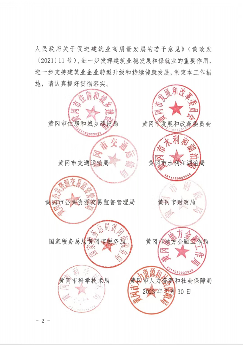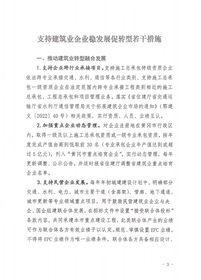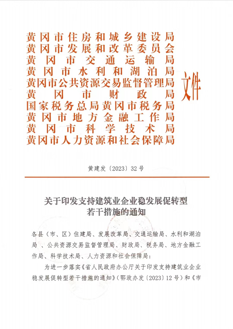黃岡市住建局關(guān)于印發(fā)支持建筑業(yè)企業(yè)穩(wěn)發(fā)展促轉(zhuǎn)型若干措施的通知