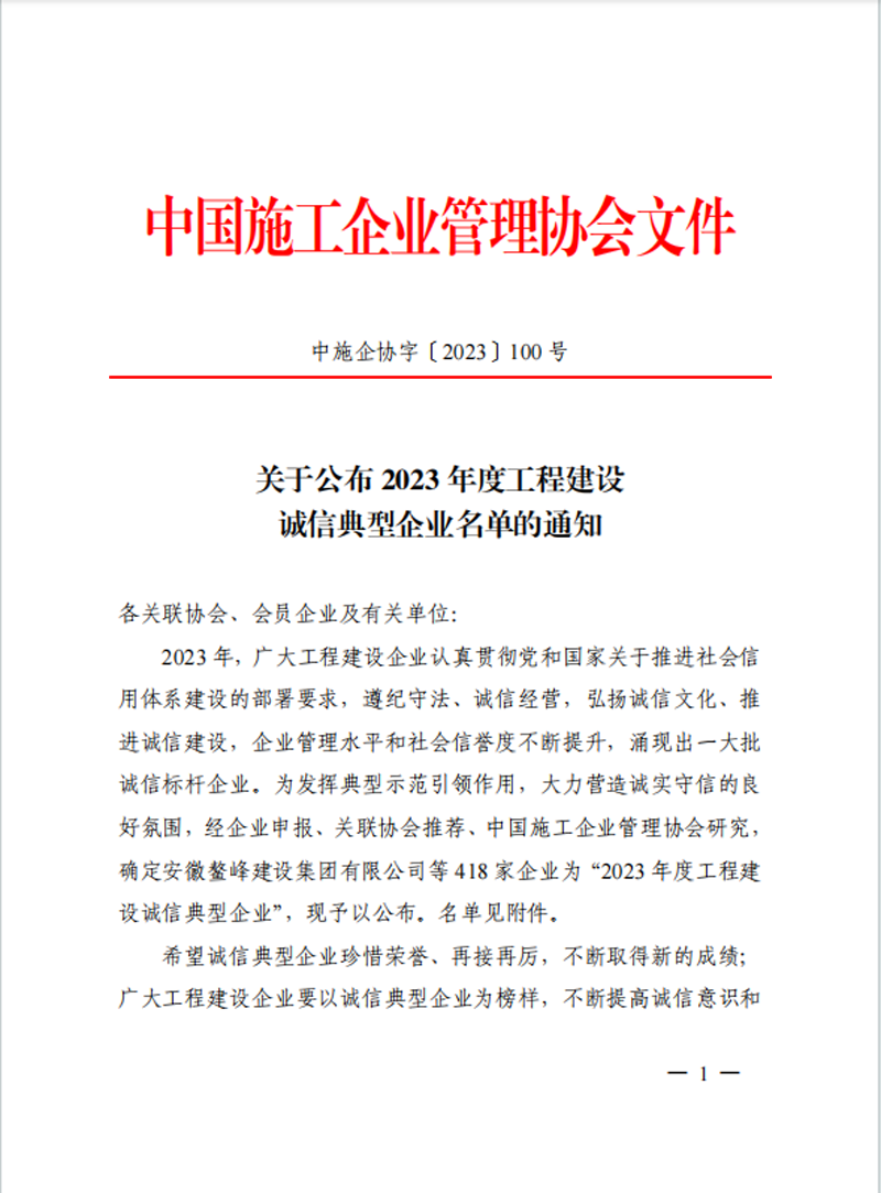 9月27日,中國(guó)施工企業(yè)管理協(xié)會(huì)公布“2023年度工程建設(shè)誠(chéng)信典型企業(yè)名單”,集團(tuán)公司榜上有名。這是集團(tuán)公司連續(xù)三年/次獲此殊榮。