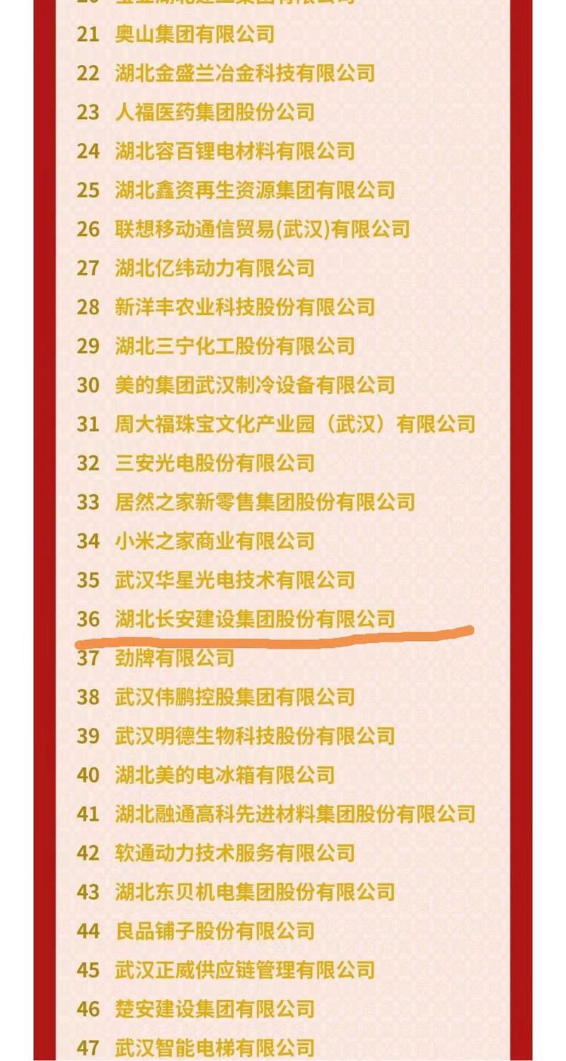 12月5日,湖北省工商業(yè)聯(lián)合會正式發(fā)布了2023湖北民營企業(yè)100強榜單、2023湖北民營企業(yè)制造業(yè)100強榜單、2023湖北民營企業(yè)服務(wù)業(yè)20強榜單。集團公司進入2023湖北民營企業(yè)100強榜單,名列第36位,比去年晉升2位。