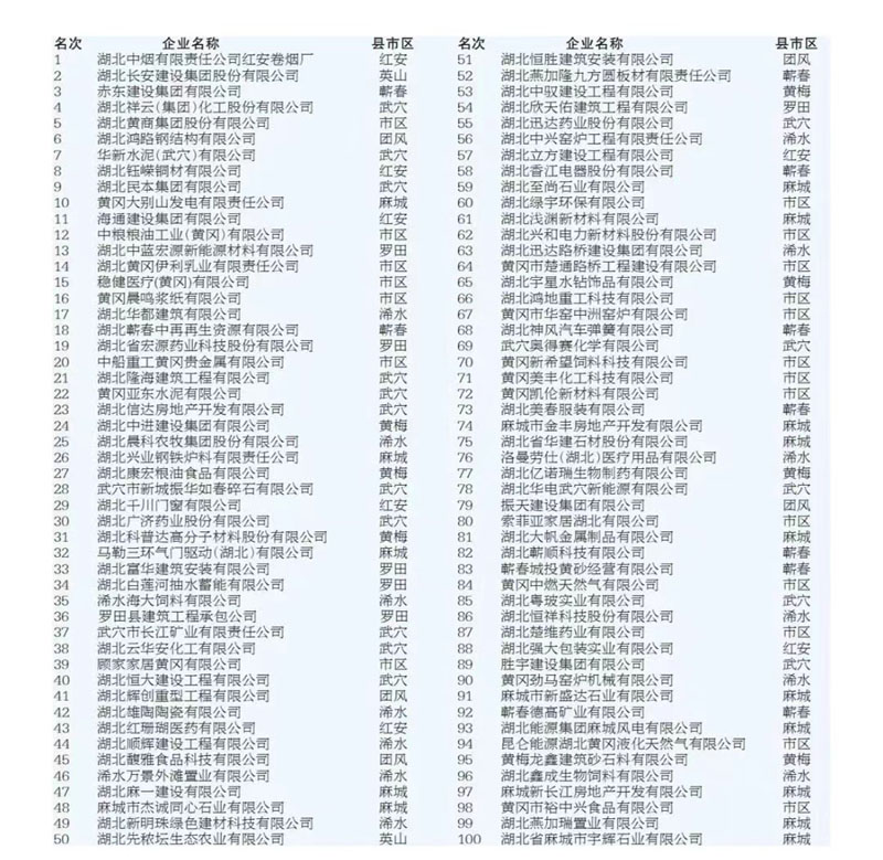 集團(tuán)公司位列2023(第十屆)黃岡企業(yè)100強(qiáng)第2名