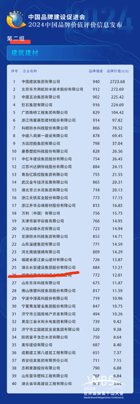 5月11日,中國品牌建設促進會發(fā)布了2024中國品牌價值評價信息,湖北長安建設集團股份有限公司(簡稱:湖北長安建設集團)在全國“第二組 建筑建材”類40家企業(yè)中位列第25名,品牌價值為13.21億元,比上年度增加1.04億元,連續(xù)3年位居黃岡市企業(yè)(產(chǎn)品)品牌第一。