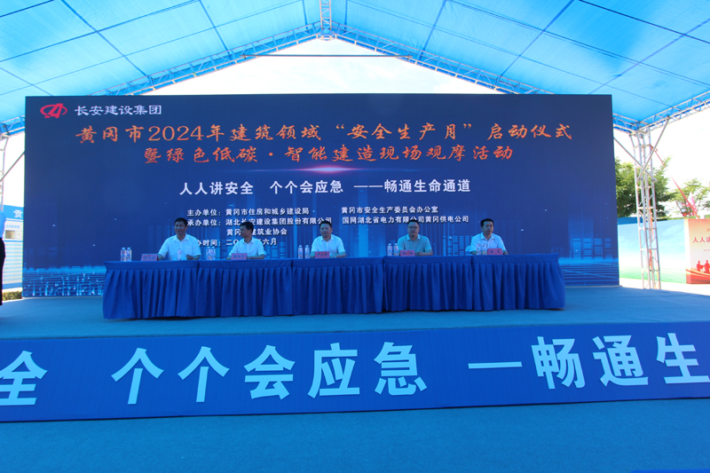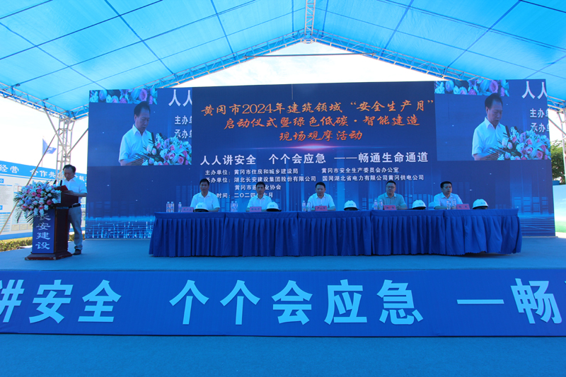2024年6月是第23個全國安全生產(chǎn)月,主題為“人人講安全、個個會應(yīng)急—暢通生命通道”。為了進(jìn)一步強化安全意識,壓實安全責(zé)任,提高應(yīng)急處置能力,由黃岡市住房和城鄉(xiāng)建設(shè)局、黃岡市安全生產(chǎn)委員會辦公室主辦以及湖北長安建設(shè)集團(tuán)股份有限公司、國網(wǎng)湖北省電力有限公司黃岡供電公司、黃岡市建筑業(yè)協(xié)會協(xié)辦的黃岡市2024年建筑領(lǐng)域“安全生產(chǎn)月”啟動儀式暨綠色低碳?智能建造現(xiàn)場觀摩活動,于6月3日在國網(wǎng)湖北省電力有限公司黃岡供電公司生產(chǎn)綜合用房項目舉行。國網(wǎng)湖北省電力有限公司黃岡供電公司三級職員張成同志致歡迎辭,湖北長安建設(shè)集團(tuán)股份有限公司副董事長、總經(jīng)理葉發(fā)保作經(jīng)驗交流發(fā)言。黃岡市住建局黨委書記、局長尹小軍以及黃岡市建筑業(yè)協(xié)會會長、湖北長安建設(shè)集團(tuán)董事長段衛(wèi)昌出席會議并講話,與主席臺領(lǐng)導(dǎo)嘉賓共同啟動觸摸球,標(biāo)志著以國網(wǎng)湖北黃岡供電公司生產(chǎn)綜合用房項目為引領(lǐng)的黃岡市2024年建筑領(lǐng)域“安全生產(chǎn)月”活動正式啟動,全面展開。