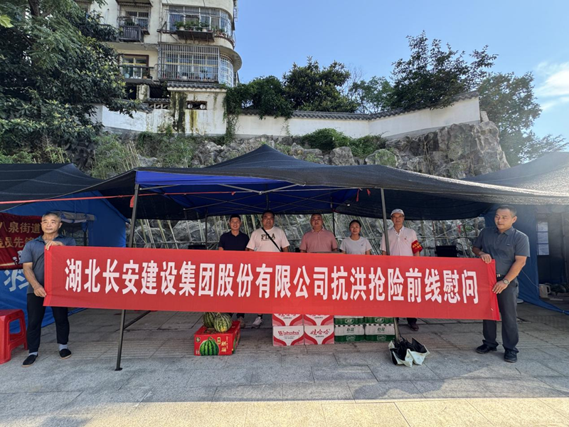 7月5日下午,烈日當(dāng)空。為了做好防汛抗洪工作,保護(hù)人民生命財(cái)產(chǎn)安全,發(fā)揮駐地企業(yè)的社會責(zé)任擔(dān)當(dāng),集團(tuán)公司黃石市煤炭礦務(wù)局職工醫(yī)院新建醫(yī)院綜合樓項(xiàng)目負(fù)責(zé)人華小軍經(jīng)理不辭辛苦,冒著高溫酷暑帶領(lǐng)項(xiàng)目部管理人員前往八泉街道抗洪搶險(xiǎn)突擊隊(duì)長江干堤駐地,向奮戰(zhàn)在抗洪搶險(xiǎn)一線的干部、群眾以及志愿者們進(jìn)行慰問,并捐贈一批防暑降溫物品及防汛物資。
